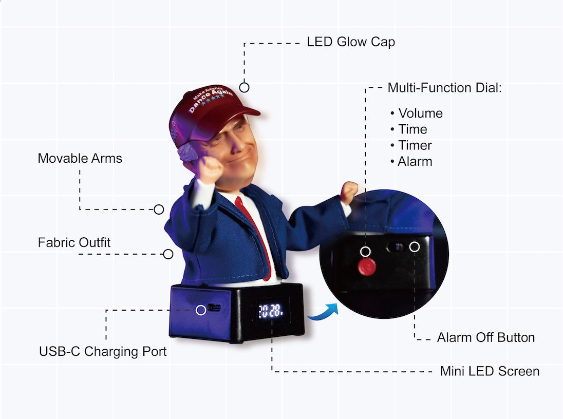 A mini LED Screen on the base displays the clock and timer clearly, and the Alarm-Off Button provides quick manual control.